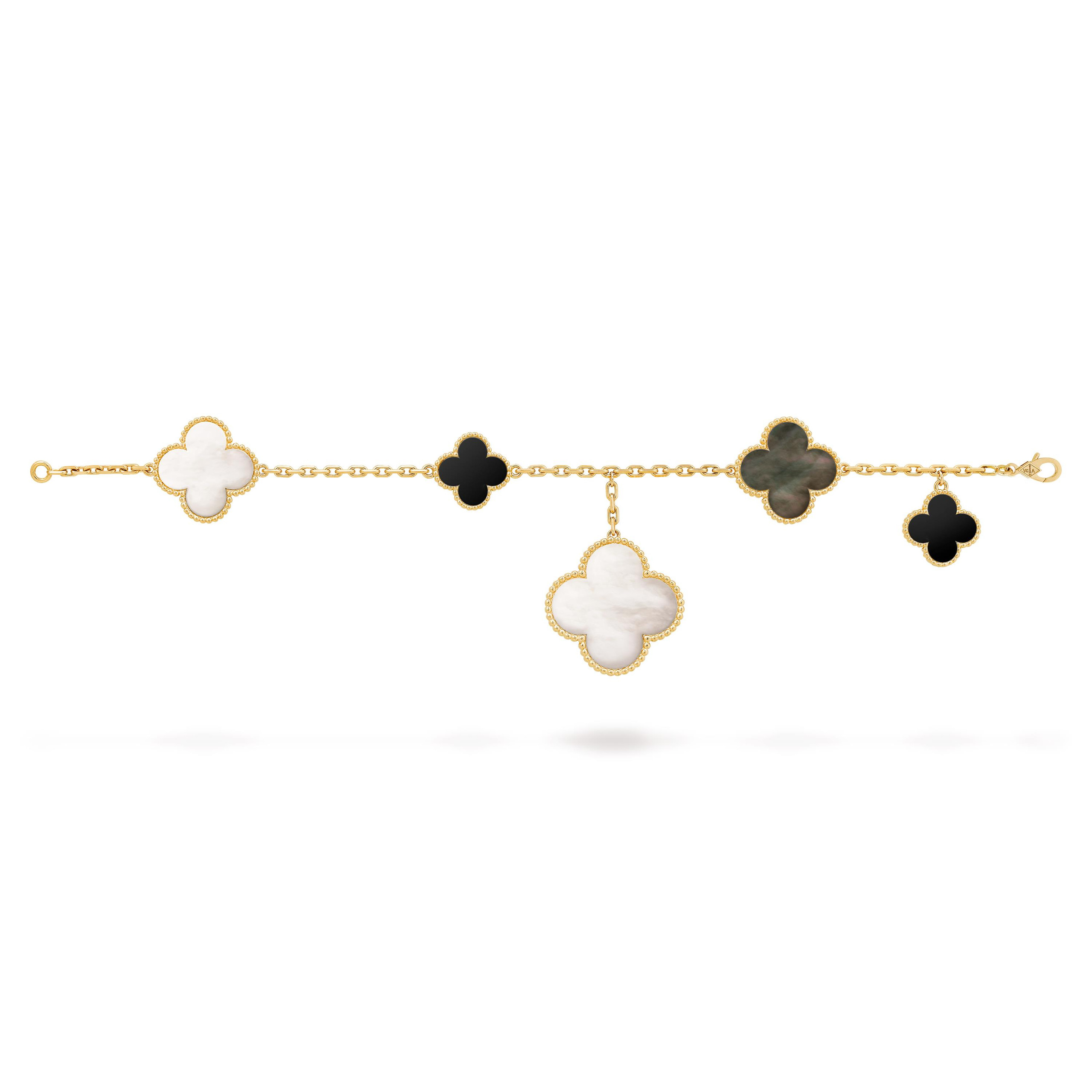 A gorgeous addition to any jewelry collection is this Van Cleef & Arpels replica Magic Alhambra bracelet. This delicate and feminine bracelet, which is made with premium materials and meticulous attention to detail, has five famous Alhambra patterns. This bracelet radiates charm and sophistication and is ideal for adding a touch of elegance and luxury to any ensemble. This replica Magic Alhambra bracelet is sure to turn heads, whether you’re dressing up for a formal occasion or searching for a modest yet fashionable piece for daily use. The classic beauty and charm of this gorgeous Van Cleef & Arpels bracelet will elevate your appearance.