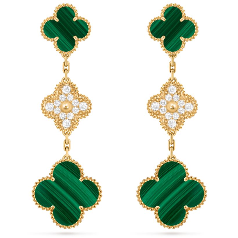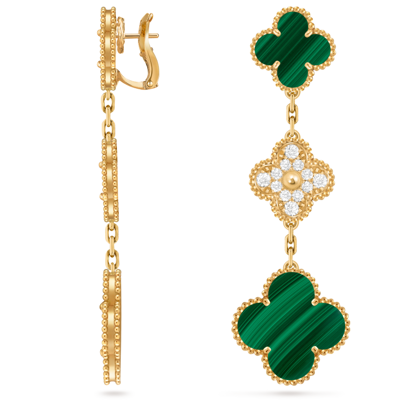 Van Cleef & Arpels’ magnificent Magic Alhambra earrings are a superb imitation of the original style. Each of the three delicate motifs in the recognizable clover shape has a glittering diamond in the middle. These earrings are a sophisticated and classic addition to any ensemble because of their exquisite detailing and opulent materials. These earrings, which are made with the highest care and attention to detail, are more reasonably priced versions of the renowned Van Cleef & Arpels brand’s beauty and elegance. These earrings are a must-have for any jewelry collection because they are ideal for any special occasion or to enhance your regular look.