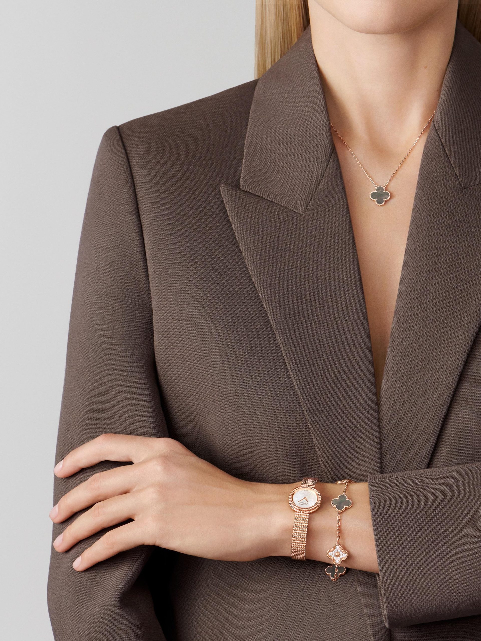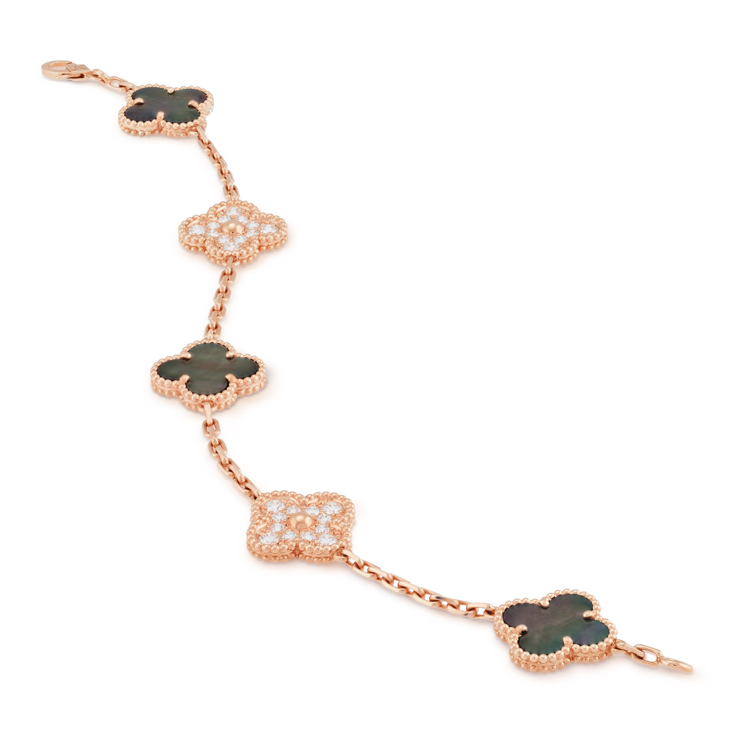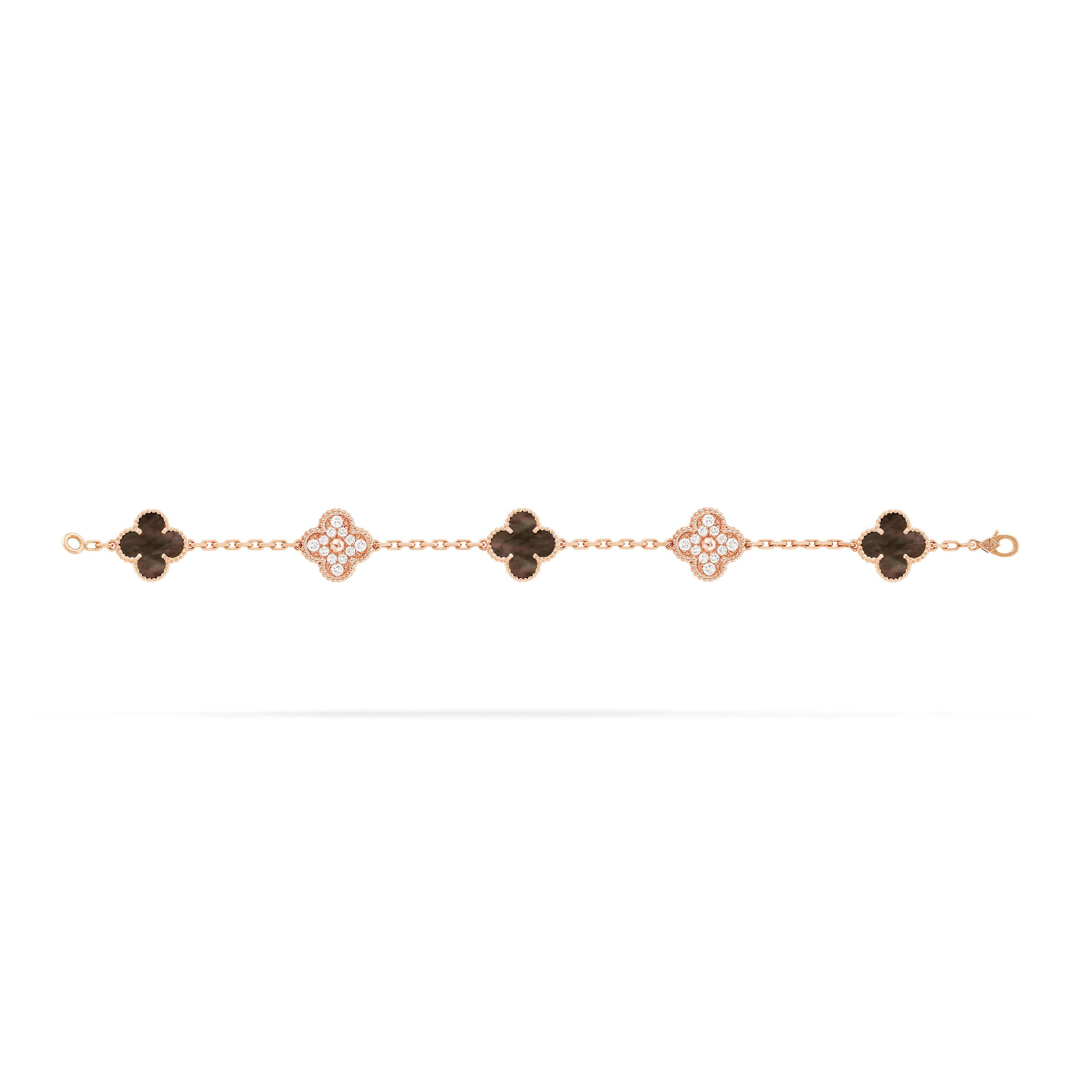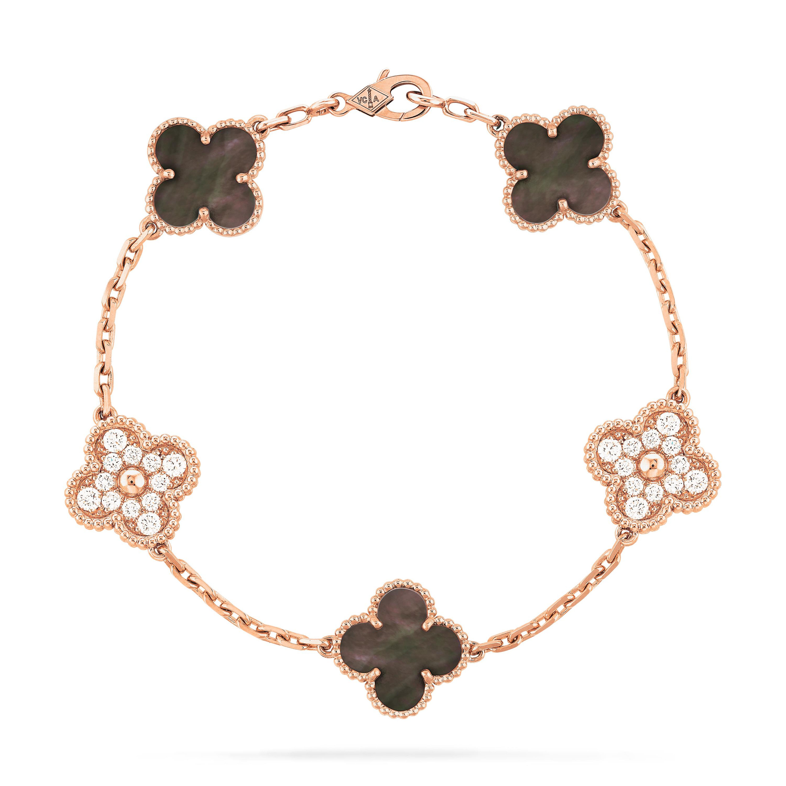 Van Cleef & Arpels’ imitation Vintage Alhambra bracelet radiates classic sophistication and elegance. This exquisitely crafted bracelet has five famous Alhambra designs in a gorgeous shade of green. An opulent and striking piece of jewelry is created by carefully arranging each motif on a delicate chain composed of premium stainless steel. This bracelet is a must-have for every fashion-forward person because it’s ideal for adding a glamorous touch to any ensemble. For those seeking a superior imitation of the original design, this replica Vintage Alhambra bracelet is an excellent option due to its flawless design and reasonable price.