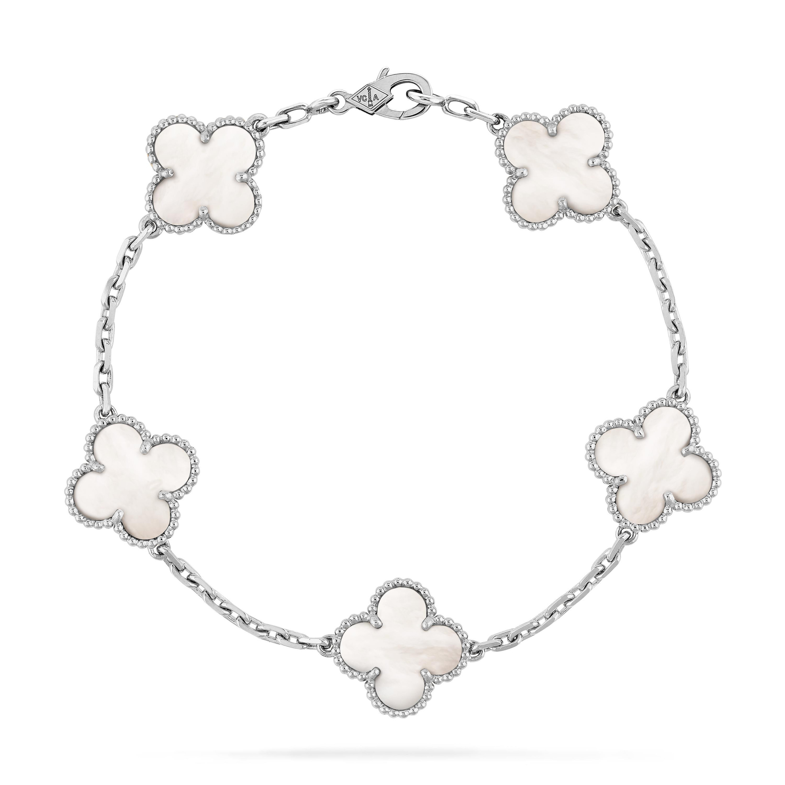 A stunning replica of the renowned Van Cleef & Arpels Vintage Alhambra Bracelet may be seen at this site. The bracelet is made with premium materials to replicate the original design and features five motifs of the famous four-leaf clover. A classic and sophisticated piece of jewelry is created by carefully arranging the patterns on a delicate chain. The original Alhambra collection, which is renowned for its timeless and classic appeal, is perfectly captured in this replica. This bracelet is ideal for any setting and gives your ensemble a hint of refinement and luxury. With this gorgeous reproduction, you may have a piece of the famous Alhambra collection for a much lower price.